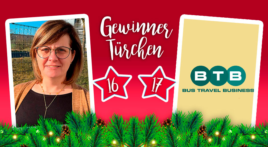 Hinter Adventskalender-Türchen Nummer 17 am Freitag steckte ein Gutschein für zwei Personen zum Besuch des BTB Workshops Süddeutschland im Raum München Ende August/Anfand September 2022 inklusive einer Übernachtung im Doppelzimmer, der von BTB Busreisen.CC gesponsert wurde. Gewonnen hat den Gutschein Inge Wahl vom Omnibusbetrieb Wahl-Reisen in Hünstetten.