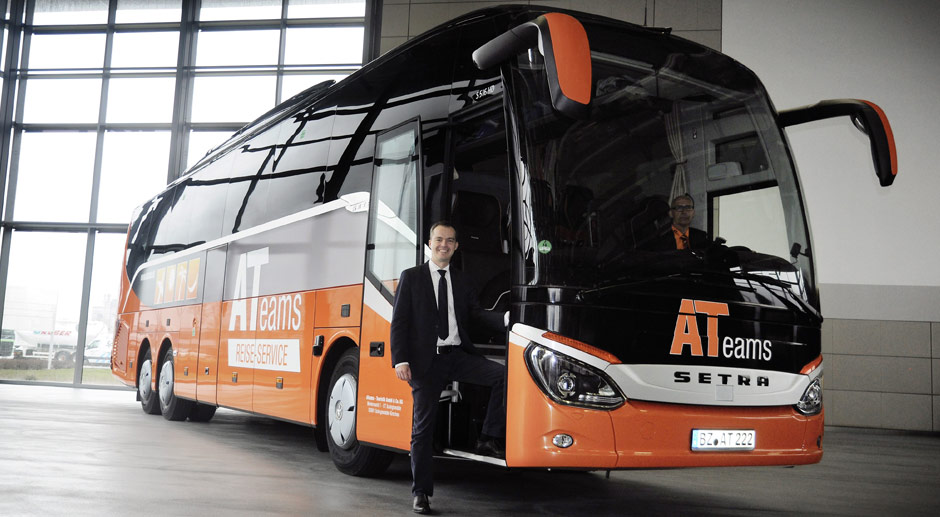 Er entschied sich für einen Setra Comfort Class 500 und bestellte den S 516 HD im Spätsommer des vergangenen Jahres. Am 10. März holte er seinen neuen Reisebus in Ulm ab. Der S 516 HD ist mit 48 Sitzplätzen ausgestattet, die in einem großzügigen Abstand von jeweils 83 Zentimetern angeordnet sind. Der Reisebus ist zudem mit einer Bordküche sowie 220 Volt-Steckdosen und Ladestationen für Smartphones und Tablets ausgerüstet. Zum Einsatz kommen soll der Setra hauptsächlich auf Eventreisen, aber auch für klassische Rundreisen, Themenreisen und Aktivreisen soll er eingesetzt werden.