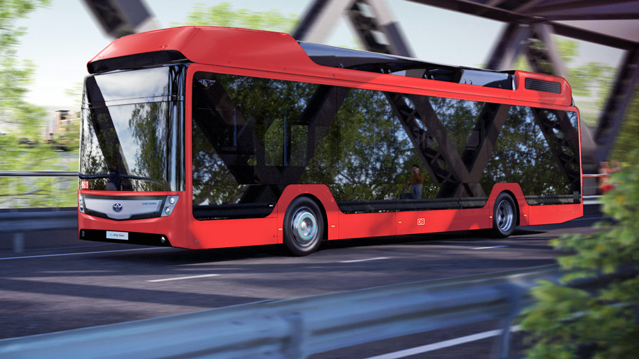 Die Wasserstoffbusse des Typs "H2 City Gold" haben eine Reichweite von bis zu 550 Kilometer. Foto: Deutsche Bahn AG/Caetano Bus