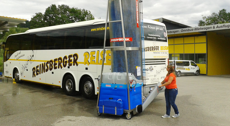 Mit den Modellen „Battery“ und „Battery Easydrive“ können nach Angaben von Speedywash bis zu 20 Busse gewaschen werden, ohne dass die Batterien nachgeladen werden müssen. Mit dem Modell „Battery Xtra“ lässt sich eine Betriebszeit von bis zu acht Stunden am Stück erreichen. Bei allen genannten Modellen muss lediglich der Wassertank regelmäßig nachgefüllt werden.