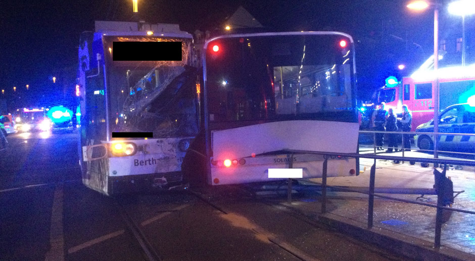 Der Bus sei durch den Aufprall am Dienstagabend (28. September 2021) in den Bereich der Bahnhaltestelle geschleudert worden, teilten Feuerwehr und Polizei am Mittwoch mit. Ein 21-jähriger Mann, der dort gewartet habe, sei schwer verletzt worden. Auch der 26 Jahre alte Busfahrer und fünf Fahrgäste in Bus und Bahn erlitten Verletzungen. Sie wurden in Krankenhäuser gebracht. Der 30 Jahre alte Bahnfahrer blieb unverletzt.