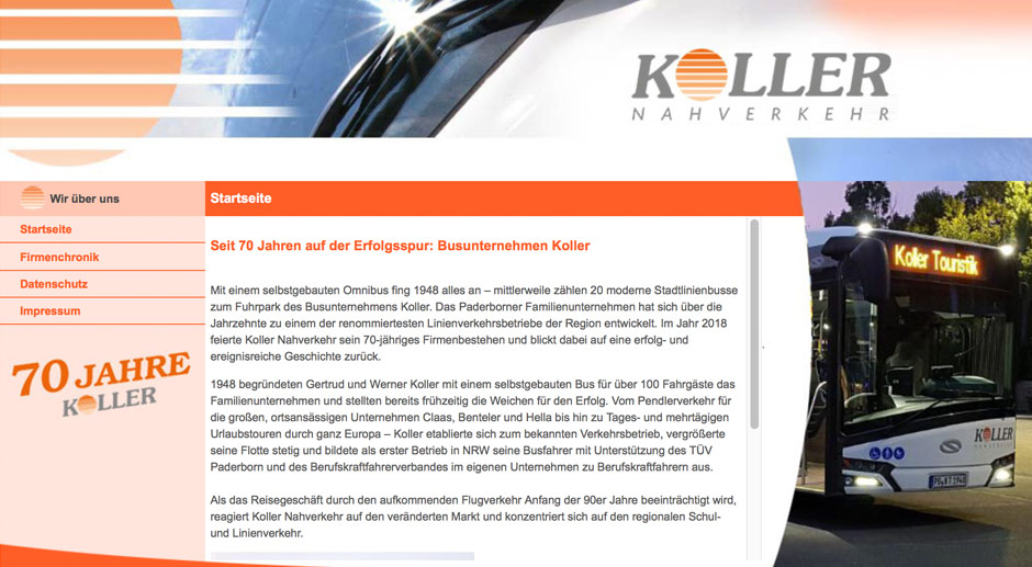 Das Busunternehmen wurde 1948 von Werner Koller gegründet und wurde über drei Generationen weitergeführt. Die Firma Koller war sowohl im Nahverkehr in Paderborn und Ostwestfalen-Lippe als auch im Bereich Busreisen aktiv.