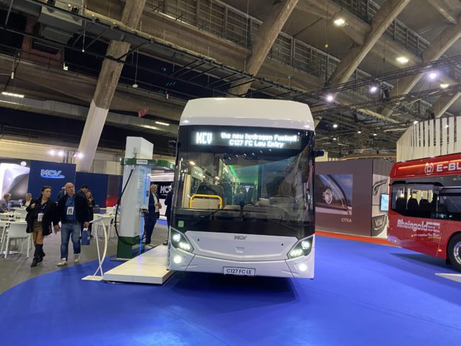 Der ägyptische Bushersteller MCV hat auf der Busworld Europe seinen brandneuen wasserstoffbetriebenen Bus C 127 FC LE für den europäischen Markt vorgestellt. Der 12,1 Meter lange Bus bietet bis zu 43 Sitzplätze und eine Gesamtkapazität für bis zu 79 Passagiere. Mit seiner 100-kwh-Batterie und Hybridantrieb ermögliche der Bus Reichweiten bis zu 600 Kilometer.