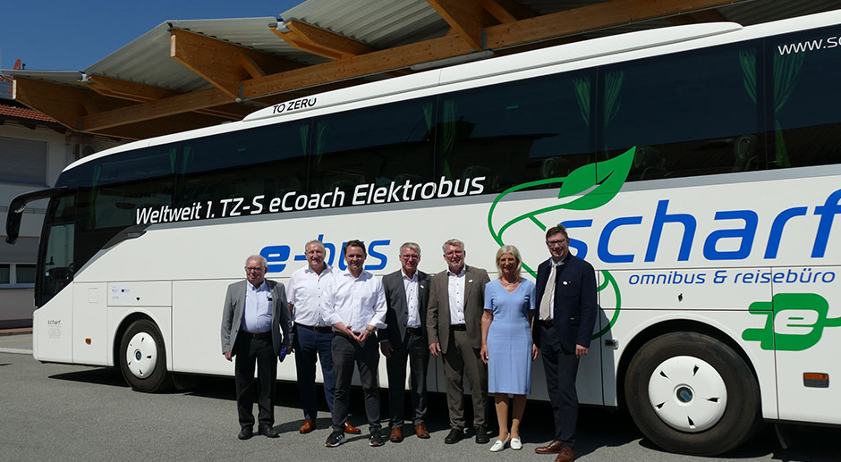 Der öffentlichen Präsentation des ersten TZ-S eCoach waren jedoch einige Tausend Kilometer Testfahrt vorausgegangen. Noch im Juli ging es mit zehn Personen nach Südtirol, Bozen und Meran, inklusive Dolomitenrundfahrt zum Nigerpass auf 1700 Meter. Innerhalb von zwei Tagen bewältigte der E-Reisebus eine Strecke von 1200 Kilometern. Es sei dennoch ein Kraftakt gewesen, das Elektrobus-Projekt sowie die Installation der Ladeinfrastruktur umzusetzen, erklärte Andreas Scharf im Rahmen der Präsentation und Einweihungsfeier. Auf die beiden neu gebauten Busports hat das Unternehmen eine Photovoltaikanlage von 4500 Quadratmetern installiert, die jetzt 17 Ladepunkte und zwölf Schnellladesäulen versorgt.