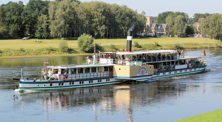 Zum 185. Jubiläum der Elbdampfschiffahrtsgesellschaft am Tag zuvor gebe es eine Flottenparade. In Erinnerung an die Genehmigung durch Sachsens König am 08. Juli 1836 legen sieben historische Raddampfer ab.