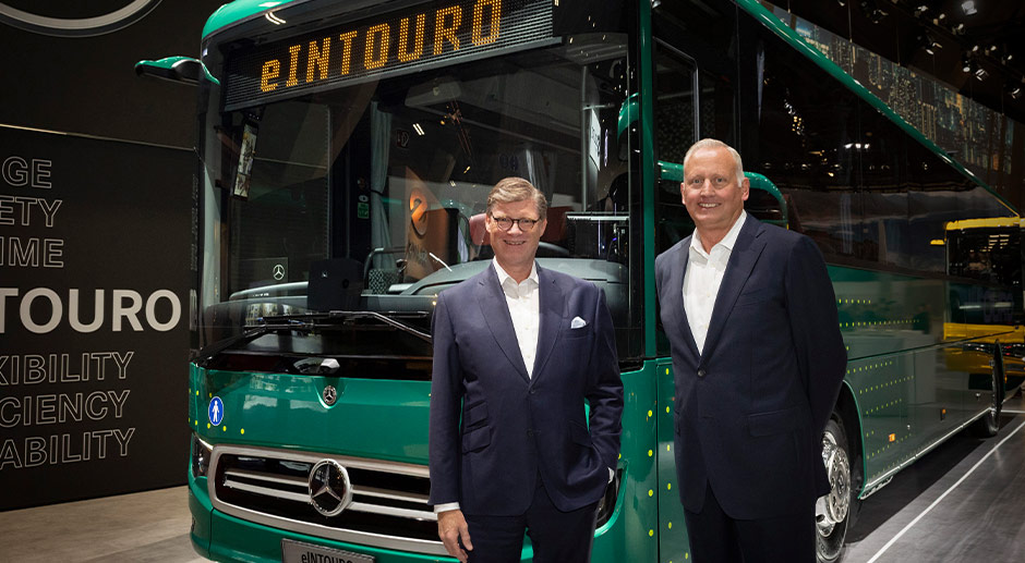 Auf der Busworld können Messebesucher den neuen E-Intouro nicht nur am Daimler-Buses-Stand in Halle fünf besichtigen, sondern auch bei Testfahrten im E-Intouro M mit Coach-Ausstattung in Aktion erleben. Daimler Buses plant außerdem, bis zum Ende der Dekade batterieelektrisch angetriebene Reisebusse im Portfolio zu haben. Brennstoffzellen‑Reisebusse sollen dann in einem nächsten Schritt in Serie gehen.