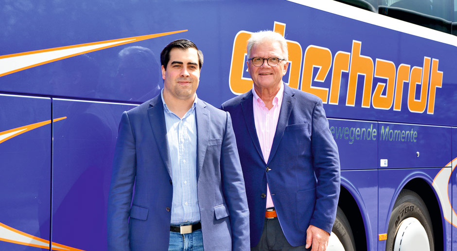 Stillstand ist für Richard Eberhardt ein Fremdwort. Die Veränderungen im Bussektor findet er deshalb auch spannend. Ihn reizt das neue Zeitalter im Bussektor: „In der heutigen On-Demand-Wirtschaft muss man immer am Ball sein“, betont er. Gemeinsam mit seinem Sohn Philipp rüstet er das Familienunternehmen für eine digitale Zukunft. Dabei geht es vor allem um die Digitalisierung der Geschäftswelt, wodurch sich u.a. Prozesse, Planung, Zusammenarbeit, Visualisierung, Controlling etc. stark verändern. Darauf richten die Eberhardts akribisch ihr Unternehmen aus. Im Fokus stehen Themen wie etwa IT-Optimierung – Stichwort mobiles und Cloud-basiertes Arbeiten – Mitarbeiterführung, Gewinnung und Bindung neuer Fahrer etc. „Ich stelle mich den Herausforderungen und lerne“, so Eberhardt. „Ich lerne vor allem über den eigenen Tellerrand hinauszuschauen. Chancen, Risiken und Möglichkeiten müssen neu bewertet und vielleicht auch in einer Art miteinander verbunden werden, dass wirklich Neues entstehen kann. Ein einfach nur ‚weiter so‘ hat keine Perspektive mehr“, ist er überzeugt. Man dürfe nicht nur auf neueste Fahrzeuge mit neuster Technik setzen, betont Eberhardt, sondern müsse auch innerbetriebliche Prozesse optimieren und die Digitalisierung und Effizienz im Unternehmen voranbringen. „Erfolg ist nicht geschenkt, er muss täglich neu erarbeitet werden“, unterstreicht der erfahrene Unternehmer.
