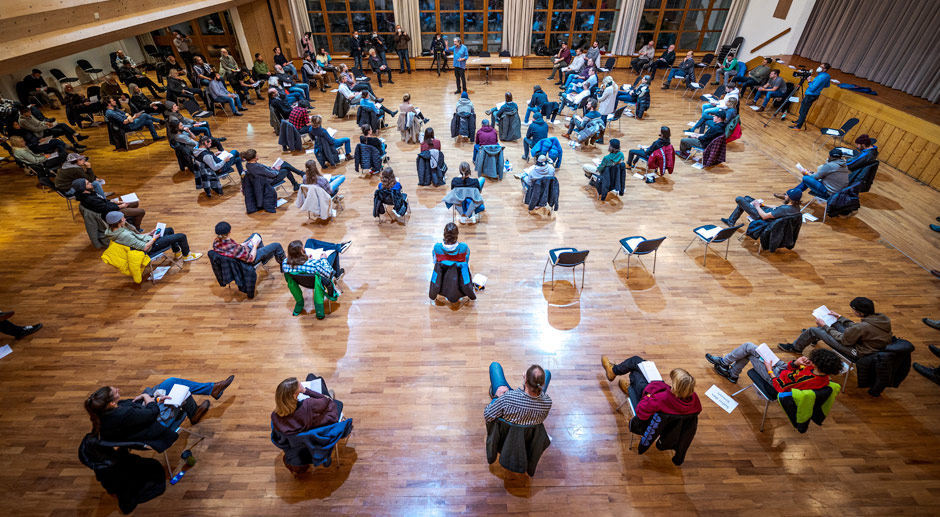 „Alle, und wenn sie auch nur einen ganz kleinen Satz haben, kommen zusammen. Es ist das einzige Mal, dass die Spieler das Stück miteinander hören“, informiert Stückl. Bereits seit Februar 2021 gilt der Haar- und Barterlass. Die Mitwirkenden der Passionsspiele lassen sich seitdem die Haare, die Männer ebenfalls auch die Bärte, wachsen. Insgesamt haben sich 1.554 Oberammergauerinnen und Oberammergauer bereit erklärt, bei den Passionsspielen 2022 dabei zu sein. Rund 500 Kinder kommen noch hinzu. Somit werden rund 2.100 Mitwirkende aus allen Generationen auf der Bühne stehen. Das Passionsspiel wird seit dem 17. Jahrhundert ausschließlich von den Bürgerinnen und Bürgern des Dorfes getragen – die Mitwirkenden müssen entweder in Oberammergau geboren sein oder seit 20 Jahren im Ort leben.