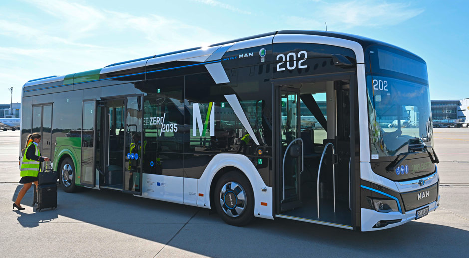 Spätestens ab 2035 will der Münchner Flughafen CO2-neutral sein, so der Vorsitzende der Geschäftsführung der Flughafen München GmbH (FMG), Jost Lammers. Mit der Anschaffung der MAN eBusse gehe man einen weiteren wichtigen Schritt in diese Richtung. Die elektrischen Löwen kommen bei Aeroground auf dem Vorfeld zum Einsatz, bringen Reisende und Crews aus den Terminals zu ihren Flugzeugen und holen sie nach der Landung an den Maschinen ab. Bei Einsätzen mit besonders hohem Passagieraufkommen sind die 18-Meter-Gelenkbusse als Ergänzung zu den batterieelektrischen Solobussen am Start.