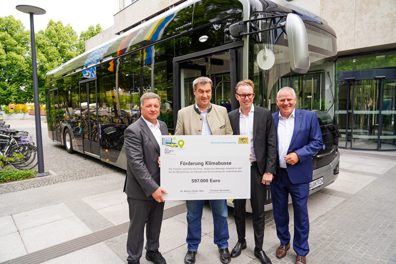 Ministerpräsident Markus Söder sagt dazu: „Bayern auf dem Weg zur Klimaneutralität: Heute haben wir Förderbescheide für neue Elektrobusse an zwei Unternehmen überreicht. Diese neuen ‚Klimabusse‘ vereinen Fahrgenuss und Ökologie. Bis 2040 wollen wir als Bundesland klimaneutral sein und investieren dafür jährlich 1 Milliarde Euro. Aber Mobilität ist in einem großen Land wie Bayern wichtig – insbesondere im ländlichen Raum. Bis 2028 wollen wir 2.000 Klimabusse fördern und die Ladeinfrastruktur verbessern.“