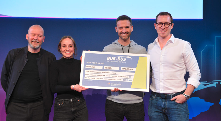 Die Fachmesse Bus2Bus findet vom 24. bis 25. April auf dem Messegelände in Berlin statt. Unternehmen, Startups oder Studierende, die visionäre Einfälle zu Design und Gestaltung von Fahrzeugen, smarten Sicherheits- und Assistenzsystemen, dem Reisehub der Zukunft sowie Fresh Travel Konzepten haben, können ihre Ideen noch bis zum 29. Februar einreichen. Eine Expertenjury prämiert die besten Konzepte mit dem „Fresh Travel Award“ live auf der Bus2Bus.