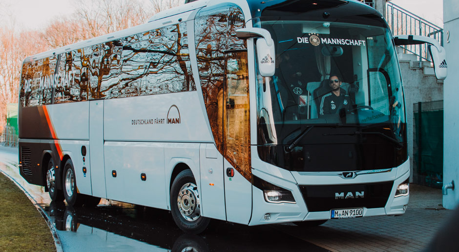 Aber nicht „nur“ Fans und Fußball-Begeisterte fahren während des Turniers MAN. Die deutsche Nationalmannschaft reist mit einem MAN Lion‘s Coach zu ihren Spielen. Besonders sei neben der auffälligen Außengestaltung des DFB-Mannschaftsbusses – natürlich in Schwarz-Rot-Gold gehalten – vor allem die Innenausstattung, die „keine Wünsche offen ließe“, wie MAN mitteilt.
