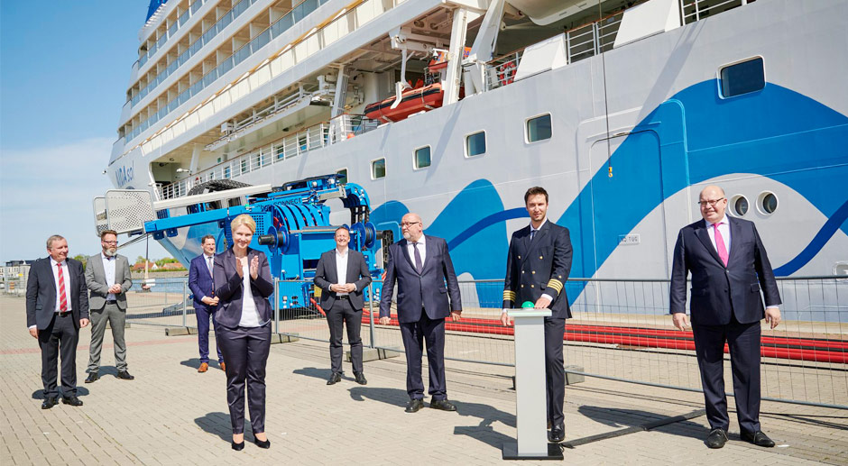 Mit der 19 Millionen Euro teuren Anlage können bis zu zwei Kreuzfahrtschiffe während der Liegezeit im Hafen mit Strom versorgt werden, sagte Bundeswirtschaftsminister Peter Altmaier am Montag (10. Mai 2021). „Das ist ein starkes Zeichen für den Standort Deutschland und für den Klimaschutz.“ Die Versorgung der Schiffe mit Strom führe zu sauberer Luft in Häfen, weniger Lärm und insgesamt weniger Ausstoß von Treibhausgasen.