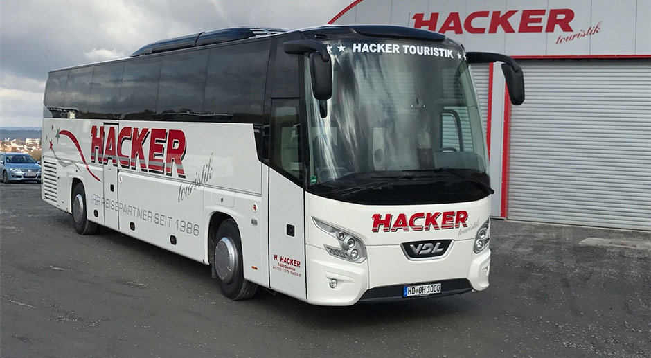 Über Hacker Touristik: Hacker Touristik wurde 1986 als Omnibus- und Mietwagenunternehmen Hacker im Sinsheimer Stadtteil Steinsfurt gegründet. Mit mehreren modernen unternehmenseigenen, aber auch angemieteten Bussen fährt das Unternehmen im Linien- und Schülerverkehr, hat aber auch touristische Busreisen in Deutschland und dem europäischen Ausland im Programm. 2016 bezog Hacker Touristik das neu errichtete Betriebsgelände mit Büros, Hallen- und Abstellflächen im Industriegebiet Oberer Renngrund in Sinsheim-Reihen.