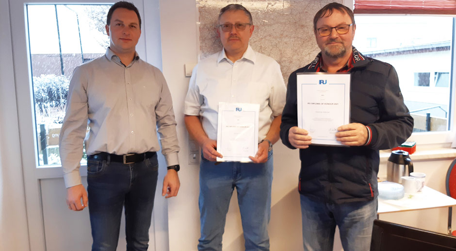 Über die Auszeichnung, die von Helmut Jetschke, Vorstand des Landesverbandes Sächsischer Omnibus- und Touristikunternehmen (LSOT) vor Kurzem überreicht wurde, konnten sich Daniel Wolf und Dietmar Werner vom Busbetrieb Erik Werner aus Kirchberg Ortsteil Wolfersgrün freuen. Mit einer Betriebszugehörigkeit von 24 Jahren gehört Daniel Wolf schon zum „alten Eisen“ der Firma. Der passionierte Skifahrer ist überwiegend im Reiseverkehr tätig und kehrte erst kurz vor Übergabe der Auszeichnung mit seinem Volvo von einer Reise aus Südtirol zurück. Dietmar Werner gründete das Busunternehmen im Jahr 1991. Mit vielen zufriedenen Urlaubern kurvte er seither quer durch Europa. Im Jahr 2020 übergab er das Unternehmen an die zweite Generation.