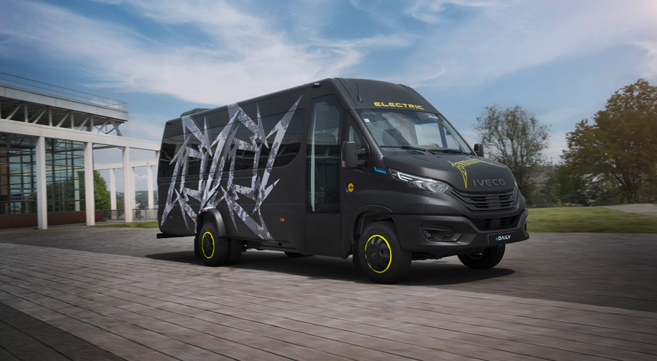 Wer Glück hat, bekommt die Crew vielleicht sogar zu Gesicht, denn für die Busse wurde zur Feier des Anlasses vom Iveco Group Styling-Zentrum eine spezielle Lackierung entworfen. Diese orientiert sich an den Farben des Albums „72 Seasons“ von Metallica und sollte im Straßenbild entsprechend auffallen. Die zwei eDaily-Minibusse bieten Platz für 19 beziehungsweise 22 Fahrgäste und sind mit drei Batterien mit einer Gesamtkapazität von 111 kWh und einem Synchronelektromotor ausgestattet. Der Motor liefert eine maximale Leistung von 140 kW (maximales Drehmoment von 400 Nm), sein flexibler Lademodus ermöglicht das schnelle Aufladen an öffentlichen Ladestationen, Industrie- und Haushaltssteckdosen mit bis zu 80 kW. Die eDaily-Minibusse haben eine Reichweite von bis zu 200 Kilometern und können damit eine Vielzahl von Aufgaben – Shuttleservice, Beförderung von Personen mit eingeschränkter Mobilität, Schülerbeförderungen und vieles mehr – lokal emissionsfrei erfüllen.