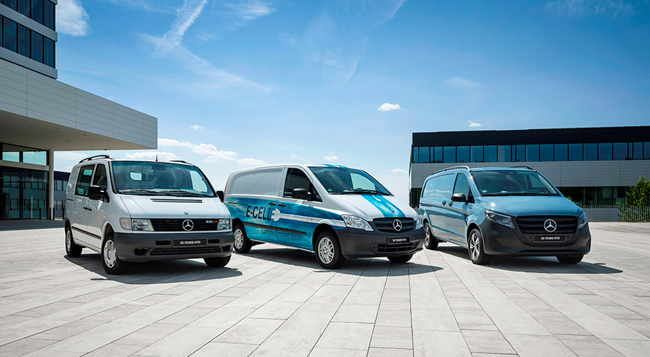 Mit der ersten Generation des Vito präsentierte Mercedes‑Benz im Jahr 1995 einen rundum neuen Transporter in der Klasse von 2,6 bis 2,8 Tonnen. Für den Antrieb sorgten quer eingebaute Vier-Zylinder-Diesel- und Ottomotoren, Verbrauch, Fahrleistung und Wirtschaftlichkeit brachten 1996 den Titel „Van of the Year“ ein. Rund 473.000 Einheiten verkaufte Mercedes-Benz bis 2003, dem Jahr, in dem die zweite Generation des Vito vom Band rollte und fortan in allen Varianten nicht mehr auf Front- sondern auf Heckantrieb setzte, was Potenziale in Sachen Fahrverhalten und Zuladung ausschöpfen sollte. Bis zu 1.295 Kilogramm Zuladung wurden möglich und von einer Premiere im Segment ergänzt: Allradantrieb.