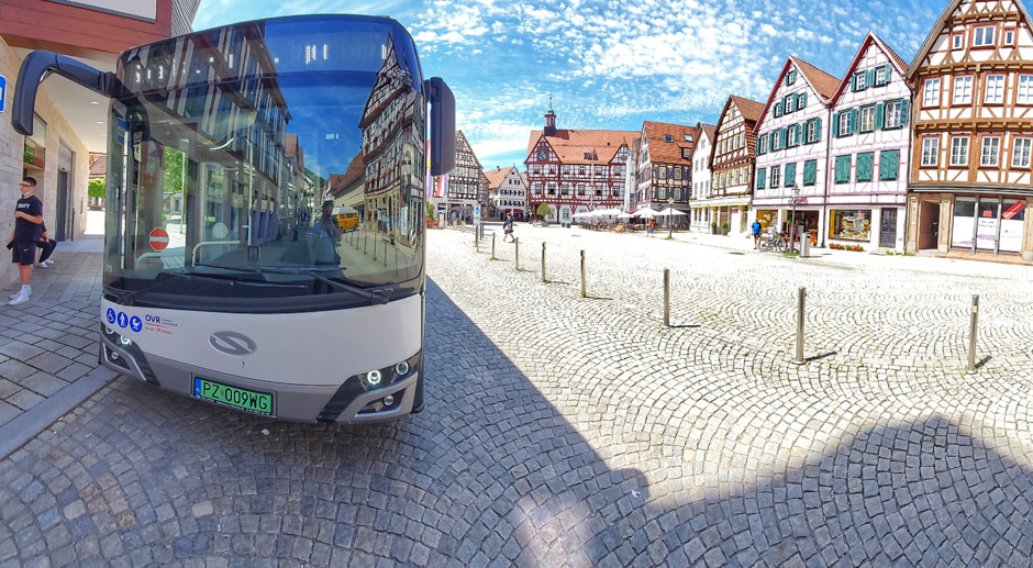 „Ich sehe im Wasserstoff und in der Brennstoffzelle eine große Zukunft“, sagt Horst Bottenschein, Chef der gleichnamigen Firma, die für die Stadt Urach die Linie 108 – den Stadtverkehr – fährt. Schon 2015, als es darum ging, wer künftig die Linie bedient, hatte der Ehinger Unternehmer den Urachern in Aussicht gestellt, in Sachen Technologie stets am Puls der Zeit zu sein. Was er eingehalten hat: Seither rollen (hoch-)moderne Busse durch die Kurstadt, 2018 präsentierte Bottenschein den ersten Hybrid-Bus, Ende März wurde der erste E-Bus getestet.