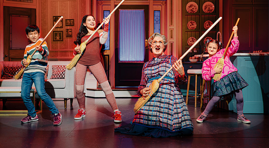 Für die Show in Düsseldorf wurden zwar viele Kostüme aus der englischen Produktion übernommen, die Düsseldorfer Kulissen sind jedoch vollkommen neu. In der Story bricht für den Familienvater Daniel eine Welt zusammen, als sich seine Frau von ihm scheiden lässt und auch noch das alleinige Sorgerecht für die drei Kinder bekommt. Daniel lässt nichts unversucht, um Zeit mit den dreien zu verbringen. Als seine Ex-Frau ein Kindermädchen sucht, verkleidet er sich mit Hilfe eines Maskenbildners als ältere Dame und bewirbt sich als Mrs. Doubtfire um den Posten. Zunächst mit Erfolg. Doch das Doppelleben ist anstrengend.