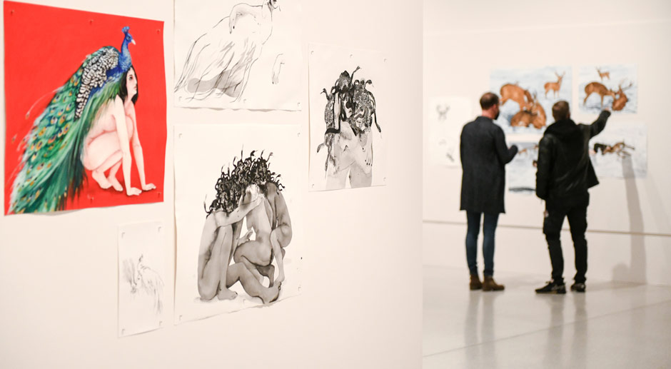 Über hundert Zeichnungen und Aquarelle werden erstmals in einer Einzelausstellung in Deutschland gezeigt. Davon stammen zahlreiche Werke aus dem Zyklus „My Name Was Written On Every Page“, den die Künstlerin während des ersten Lockdowns der Corona-Pandemie im Frühjahr als Reaktion auf die Ereignisse begonnen hat.