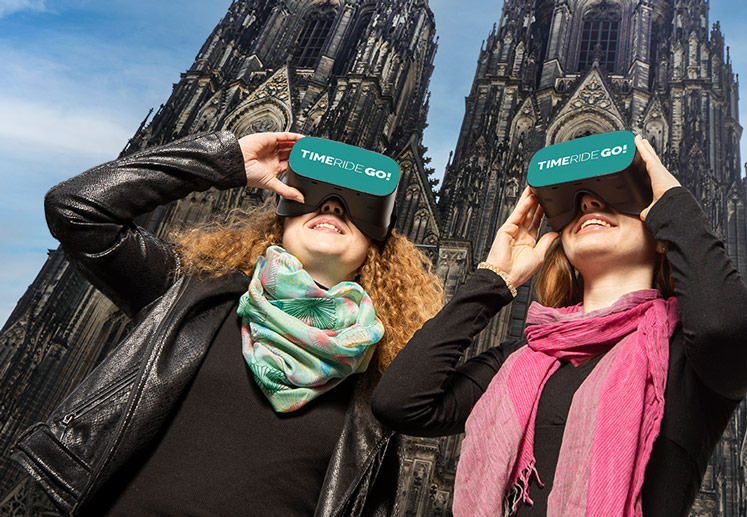 Der Time Ride-GO! Stadtrundgang „Kölner Dom 360“ mit Virtual Reality kann täglich am Kölner Dom erlebt werden. Die bereits bestehenden Zeitreisen von Time Ride laufen wie gewohnt weiter. Aufgrund der hohen Nachfrage wird vom Veranstalter eine frühzeitige Online-Buchung des Wunschtermins empfohlen.