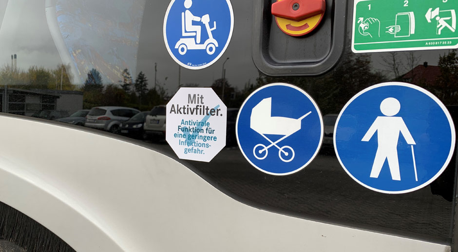 Die Filter bestehen aus mehreren Schichten und filtern effektiv schädliche Umweltgase genauso wie anorganische Partikel und Aerosole. An entsprechenden Aufklebern können Fahrgäste zukünftig erkennen, dass ein Bus mit einem dieser neuen Filter ausgestattet ist.