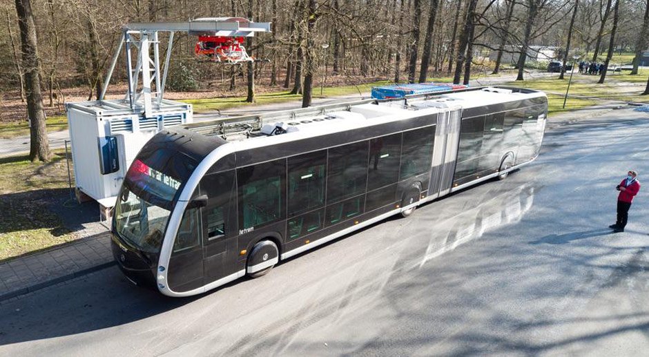 Bei diesem Projekt wird die Interoperabilität zwischen E-Bussen unterschiedlicher Hersteller und Ladesystemen verschiedener Marken untersucht. Für den Praxistest in Osnabrück kommen Gelenkbusse der Hersteller Heuliez, Irizar, Volvo und VDL sowie Ladesysteme von ABB und Heliox zum Einsatz. „Anders als bei uns in Osnabrück eingeführt, werden die vier E-Busse über einen Stromabnehmer geladen, der am Lademast hängt“, erläutert Joachim Kossow, der das EU-weite Projekt seitens der Stadtwerke betreut. Die Osnabrücker E-Gelenkbusse haben den Stromabnehmer auf dem Dach, der zum Laden ausgefahren wird und an der Ladehaube andockt.