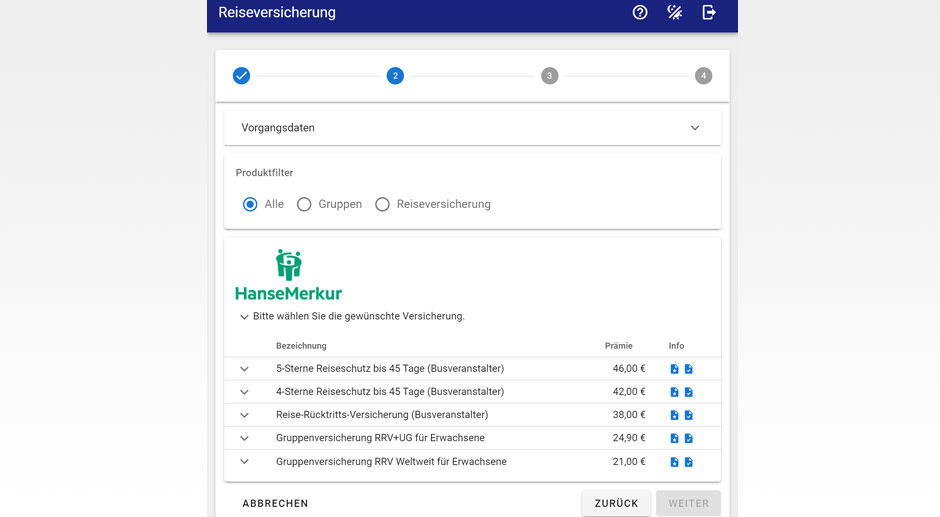 Das sorgt für eine enorme Arbeitserleichterung für Bus- und Gruppenreiseveranstalter. „Die Buchungsstrecke ist intuitiv aufgebaut und leitet die Expedienten in wenigen Schritten durch den Versicherungsprozess. Mit einem Klick werden die Vertragsinformationen für die Kunden gedruckt und sämtliche Daten automatisch an den Versicherer übermittelt. Eine nachträgliche Bearbeitung oder Listenerstellung ist nicht mehr nötig“, erklärt Geschäftsführer Eugen Wiest.