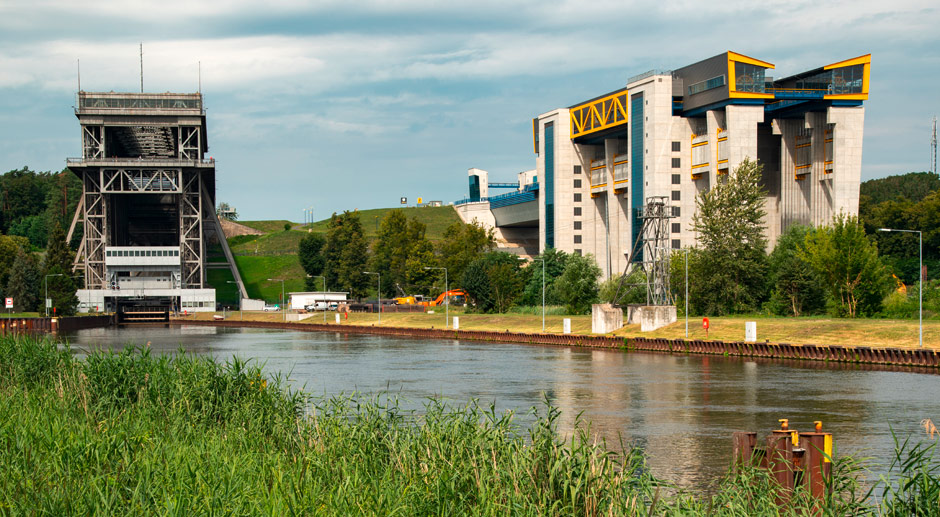 Rund 400 Millionen Euro hat die Anlage gekostet, fertiggestellt wurde sich nach mehrjähriger Verzögerung. Schiffe auf der Oder-Havel-Wasserstraße überwinden dank der Technik nun einen Höhenunterschied von 36 Metern.