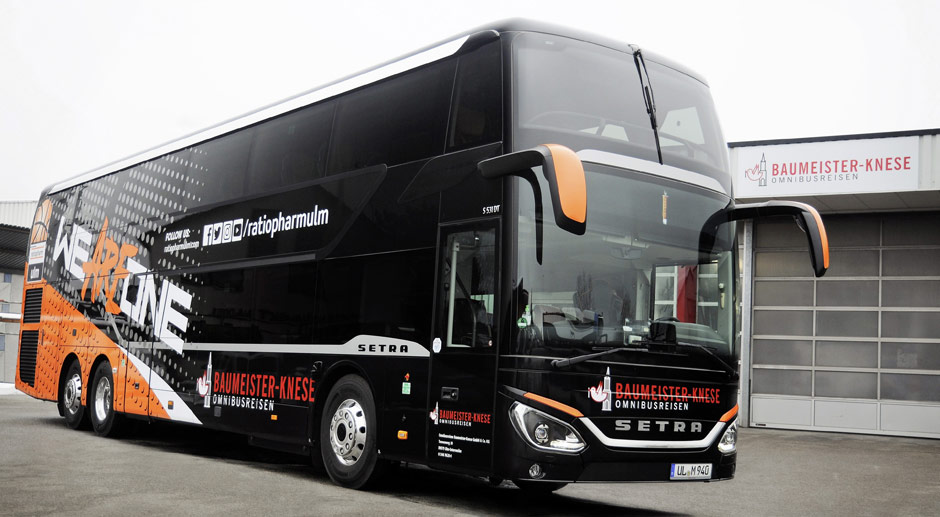 Das Busunternehmen Baumeister-Knese übernahm den Teambus S 531 DT für die Ulmer Basketballer, die vor wenigen Tagen in ihrem neuen Arbeits- und Entspannungsort in die neue Bundesliga-Saison starteten. Das Ulmer Reisebusunternehmen Baumeister-Knese ist seit 2017 Partner von Ratiopharm Ulm und verlängert seinen Vertrag nun um drei Jahre bis 2023. „Wir sind sehr stolz auf die Partnerschaft mit Ratiopharm Ulm. Dabei geht es uns nicht nur darum, unser Unternehmen zu präsentieren, sondern auch um die Solidarität, die im Basketball-Netzwerk gelebt wird. Dieser Gedanke ist in den aktuellen Zeiten wichtiger denn je“, sagt Geschäftsführer Klaus Knese zur Vertragsverlängerung.