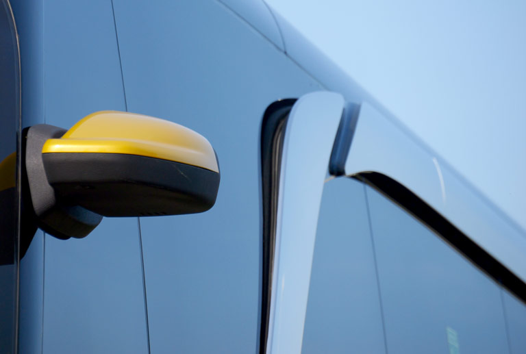 Der erste Eindruck: Ui, so viele Monitore! Links an der A-Säule sind es drei übereinander, an der rechten A-Säule (im Stadtbus wird diese Position deutlich zur Mitte hin verlagert) sind es immer noch zwei. Die großen, neuen Monitore, die von Bosch statt von Wilke kommen, sind sehr gut dimensioniert und positioniert. Darüber finden sich die kleineren Monitore der Bugbeobachtungskameras, die erstmals im weit nach vorne reichenden Kameragehäuse verbaut sind, diese reichen allerdings nicht bis ganz vor das Fahrzeug wegen der starken Rundung der Front. Unterhalb des großen Monitors wiederum findet sich der seit einiger Zeit schon verfügbare Monitor des 360 Grad TopView-Systems, das über vier weitere Außenkameras eine Vogelperspektive des Busses errechnet und diese aufrecht in Fahrrichtung anzeigt. Rechts davon bleibt immer noch genug Platz um die relevanteste Kamera für das aktuelle Fahrmanöver anzuzeigen, beim Setzen des rechten Blinkers etwa die rechte Seite des Busses. Das Bild ist automatisch bis zu einer Geschwindigkeit von ca. 30 km/h oder beim Blinken zu sehen (sehr gut beim Einscheren auf der Autobahn!), aber auch jederzeit durch einen kurzen Tipp auf den gut erreichbaren Monitor wieder hervorzuzaubern. Der Clou: in Verbindung mit den beiden Bugbeobachtungskameras und deren Monitoren oberhalb des eigentlichen Rückspiegelmonitors, werden alle Spiegelbereiche aus den einschlägigen Richtlinien erfüllt, was bisher eine Herausforderung darstellte. Ein deutscher Wettbewerber löst dieses Dilemma zum Beispiel noch mit einem weit nach vorne reichenden, wuchtigen analogen Spiegel à la Truck an der rechten A-Säule.