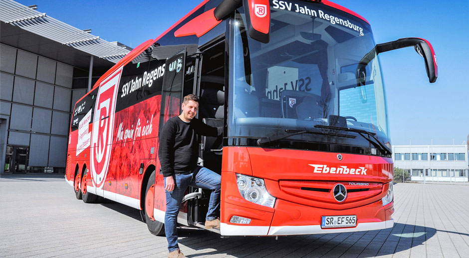 Der neue Mercedes-Benz Tourismo ist für die Ebenbeck Reisen GmbH aus Straubing der 80ste Reisebus und das dritte Fahrzeug, das sie als Mobilitätspartner dem Regensburger Traditionsverein in seinen Vereinsfarben Rot-Weiß zur Verfügung stellt.
