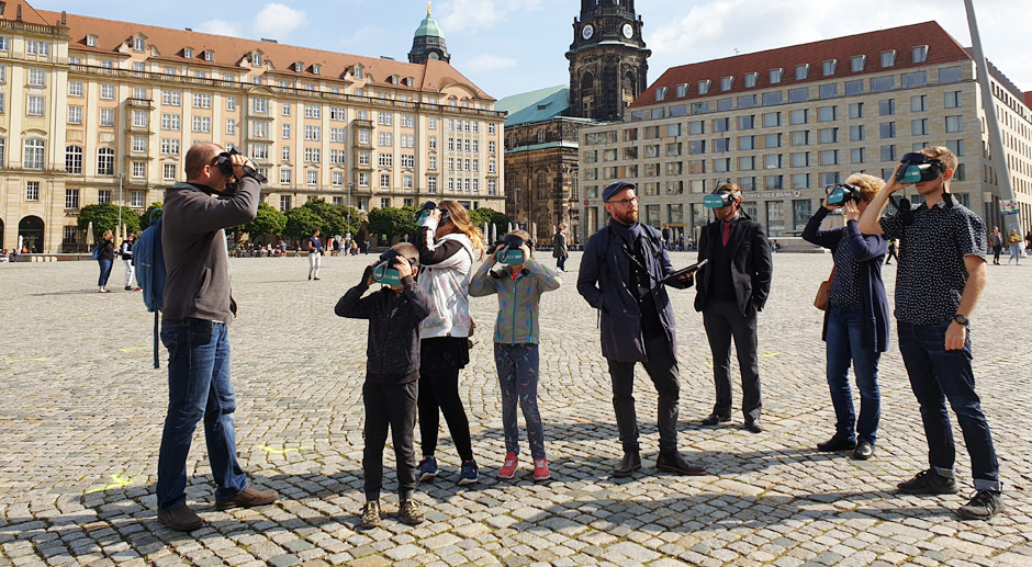 Teilnehmer können dank mobiler VR-Brillen an zentralen Orten der sächsischen Landeshauptstadt mitten in virtuelle Bewegtbild-Szenerien der Stadtgeschichte eintauchen und diese gleichzeitig mit dem heutigen Stadtbild vergleichen. Auf Grundlage von historischen Quellen, Gemälden, Fotografien und Filmaufnahmen ermöglichen die künstlerisch gestalteten 360-Grad-Bilder eindrucksvolle Früher-Heute-Vergleiche und eröffnen eine völlig neue Perspektive auf die historische Stadtentwicklung der Elbmetropole.