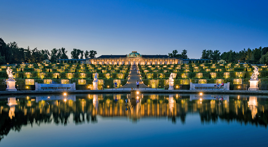 Mit Einbruch der Dämmerung lädt die Nachtlichtroute der Schlössernacht zu einer Entdeckungsreise und die illuminierten Schlösser wie auch der Park zeigen sich in einem besonderen Lichterglanz.