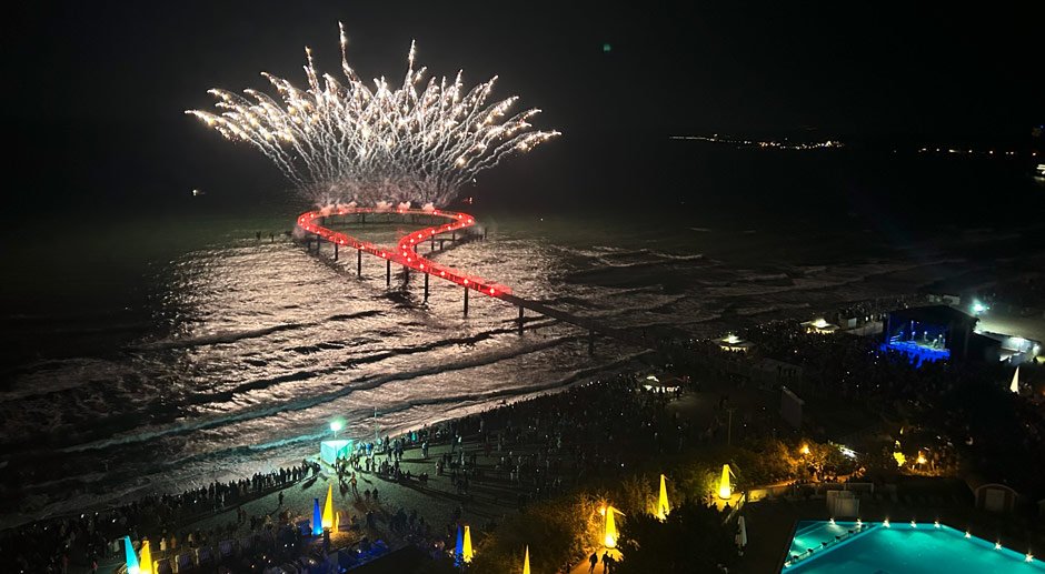 Das Maritim Hotel Timmendorfer Strand ist zugleich Namensgeber für das Bauwerk, das unter der Bezeichnung „Maritim Seebrücke“ firmiert und seit 2021 geplant und errichtet wurde. Ausgeführt ist die Brücke als Rundweg, der unterschiedliche Blickwinkel auf das Meer und die Küste – und damit sicher auch jede Menge Fotomotive - bietet. Sitzflächen für kleinere Veranstaltungen sowie zwei Bootsanlegestellen gibt es ebenfalls. Nachts wird die Brücke durch ein eigenes Lichtkonzept illuminiert. Die Beleuchtung soll für Sicherheit sorgen, ohne die Umgebung zu stark zu erhellen.