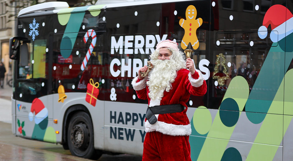 Das Fahrzeug ist nicht nur außen weihnachtlich beklebt, sondern auch und innen geschmückt. Die Haltestangen sind in Zuckerstangenoptik gestaltet, und auch ein dekorierter Weihnachtsbaum fährt mit. Daneben gibt es allerlei Details, die die Passagiere zum Entdecken einladen sollen, je nachdem, wo im Bus sie sich auf einer Fahrt befinden bzw. niederlassen. Der Weihnachtsbus von VHH Mobility und der Rindermarkthalle St. Pauli ist an allen Adventssamstagen zwischen 12 und 18 Uhr zentral in Hamburg auf der Linie 3 zwischen Stadionstraße und Rathausmarkt anzutreffen. In dieser Zeit fährt sogar ein echter Weihnachtsmann mit und verteilt Leckereien an kleine Weihnachtsfans.