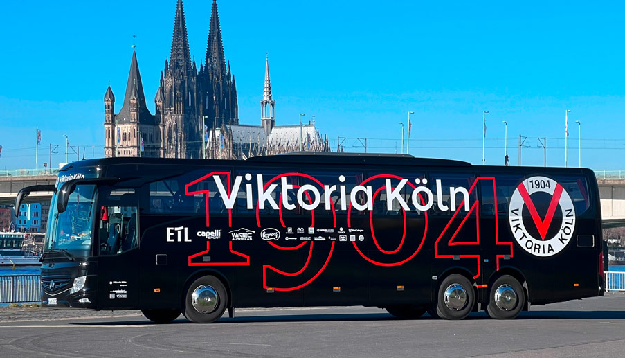 Der rund 13 Meter lange, dreiachsige Reisebus Tourismo bietet den Spielern 30 luxuriös gepolsterte Luxus-Sitze. Im Heck wurde ein Sitz- und Liegebereich mit Vis-à-vis-Sitzgruppe und zwei elektrisch versenkbaren Tischen realisiert. Die Sitzgruppe lässt sich mithilfe einer Polsterauflage für die Tische zu zwei Liegeflächen umfunktionieren, die im Stand genutzt werden können oder den Physiotherapeuten für akute Behandlungen zur Verfügung stehen. Damit dient der Bereich künftig der Mannschaft zum Entspannen und dem Trainerteam für Spielanalysen oder Einzelgespräche in entspannter Atmosphäre. An 16 weiteren Sitzen lasen sich die Tische elektrisch zu gepolsterten Beinauflagen verwandeln. Lediglich zehn Sitzplätze sind als „normale“ aber immer noch hochwertige Reisebussitze im Vier-Sterne-Sitzabstand ausgeführt. Jede Sitzreihe verfügt über USB-Ladestationen, die vordere Sitzreihe bleibt im Spielbetrieb dem Trainerstab vorbehalten. Sie ist zusätzlich mit einer modernen USB-C- und HDMI-Schnittstelle ausgestattet, um Spielanalysen oder strategische Aufstellungen auf die drei 19 Zoll großen LCD-Bildschirme im Bus übertragen zu können. Eine Küchenzeile, ein WC sowie ein umfassendes Multimediapaket mitsamt WLAN-Router runden das Komfort-Paket ab.