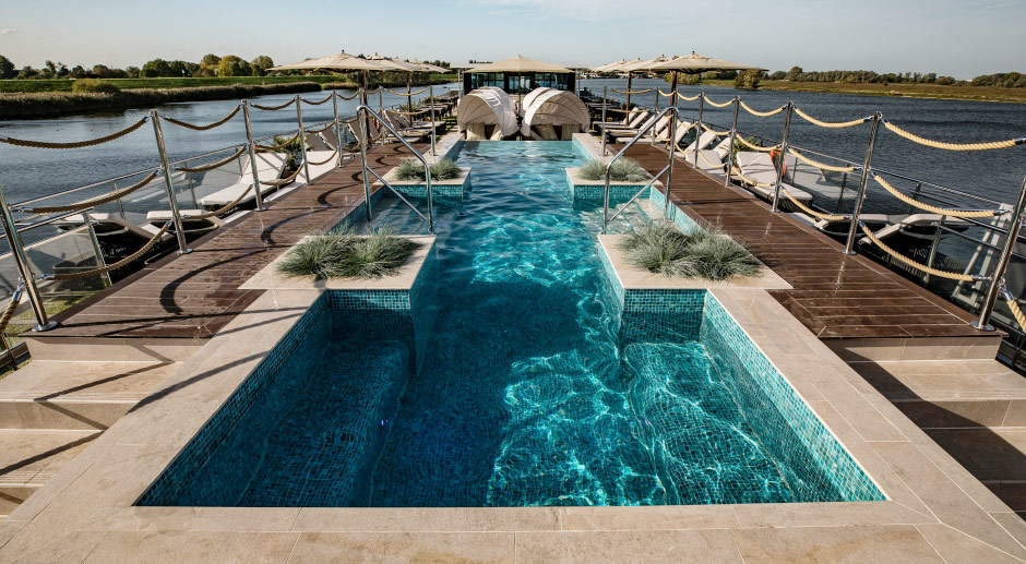 Die „Andorinha“ bietet maximal 88 Reisegästen Platz, die in Doppelkabinen oder in Suiten mit bis zu 28 Quadratmetern und französischem Balkon, im Bar- und Loungebereich sowie im Restaurant die Flusskreuzfahrten genießen können. Das Suitenschiff ist zudem mit einem Pool und Loungemöbeln auf dem Sonnendeck ausgestattet.